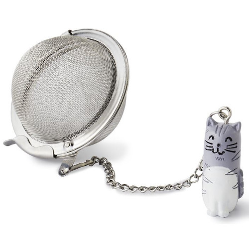 Filtro de bola con cadena y figurita, de acero inoxidable. Pintado a mano, en caja de regalo. 5cm diámetro.