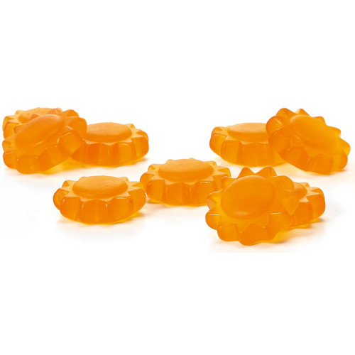 jarabe de glucosa, azúcar, zumo de naranja concentrado, zumo de melocotón concentrado, gelatina, zumo de jengibre, acidulante: ácido cítrico, aceite de jengibre, aromas naturales, colorante alimentario, agente de recubrimiento: cera carnauba