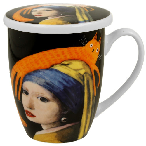 Taza de porcelana fina, con tapa, de 0,35 l. Incluye filtro de acero inoxidable, en caja de regalo.
